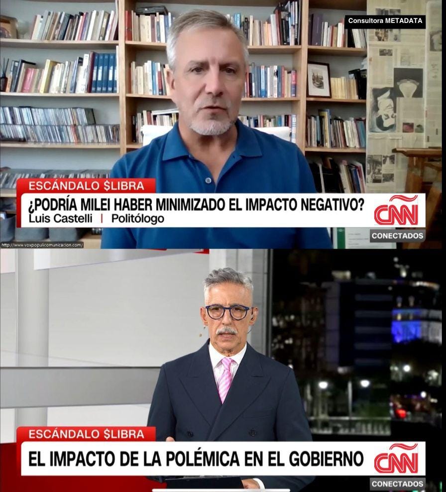 El escándalo en que se vió envuelto el Presidente de Argentina Javier Milei a raíz de la difusión de una criptomoneda tuvo una enorme repercusión en el mundo. La cadena CNN entrevistó al Lic Luis Castelli, de la Consultora METADATA, para hablar justamente del impacto de este episodio y la comunicación gubernamental que implementó el gobierno argentino a partir de él.